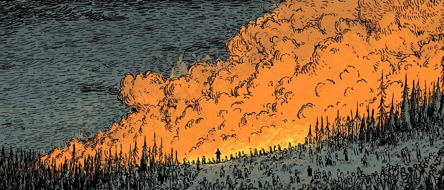 Em agosto de 1949, quinze bombeiros especializados saltaram de paraquedas sobre Mann Gulch, uma ravina remota em Montana, para combater um incêndio florestal provocado por raios no dia anterior. Era uma operação rotineira. Profissionais de elite chegando pelo céu para controlar um fogo do lado de fora, abrir uma linha de defesa e ir para casa.